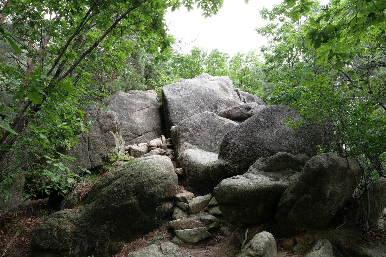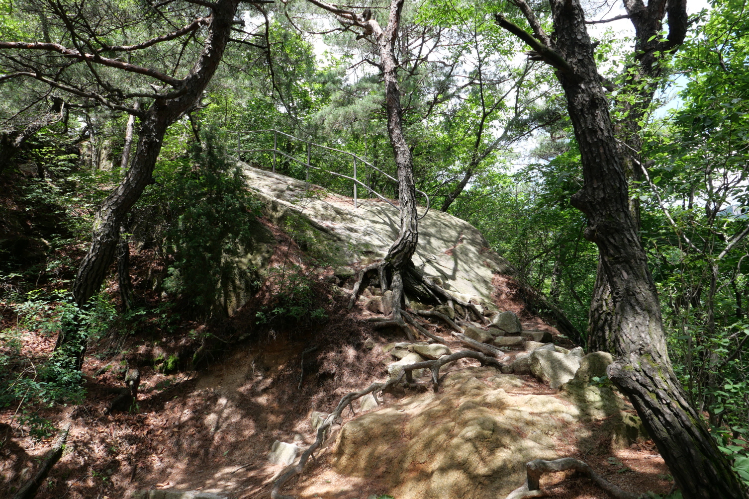 올라오니 바위 옆에 쉬기 좋은 그늘이 있다.