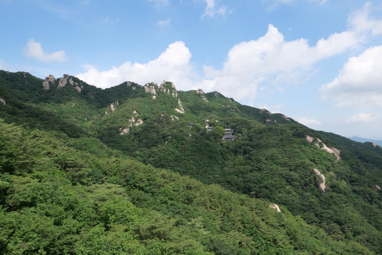 공영주차장 너머로 가까이 당겨본 도봉산 암봉들