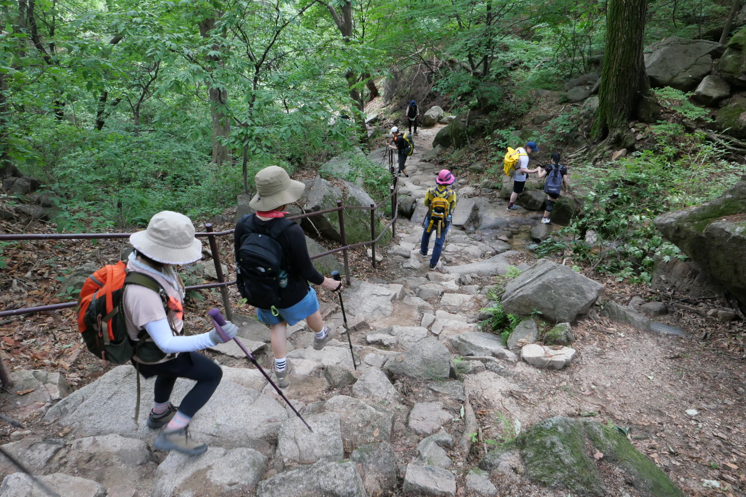 줄줄이 올라가는 등산객들..엄청 지치고 힘들어 한다. 나도 힘들기는 마찬가지다.