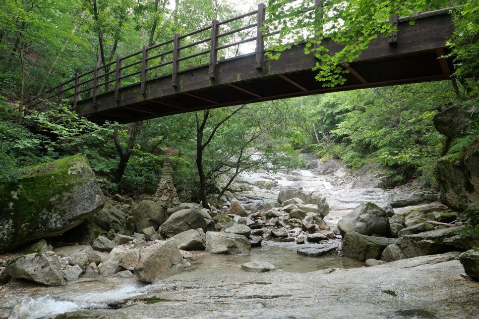 다리를 건너지 않고 계곡 풍경을 감상하기 위해 계곡 아래로 내려왔다.