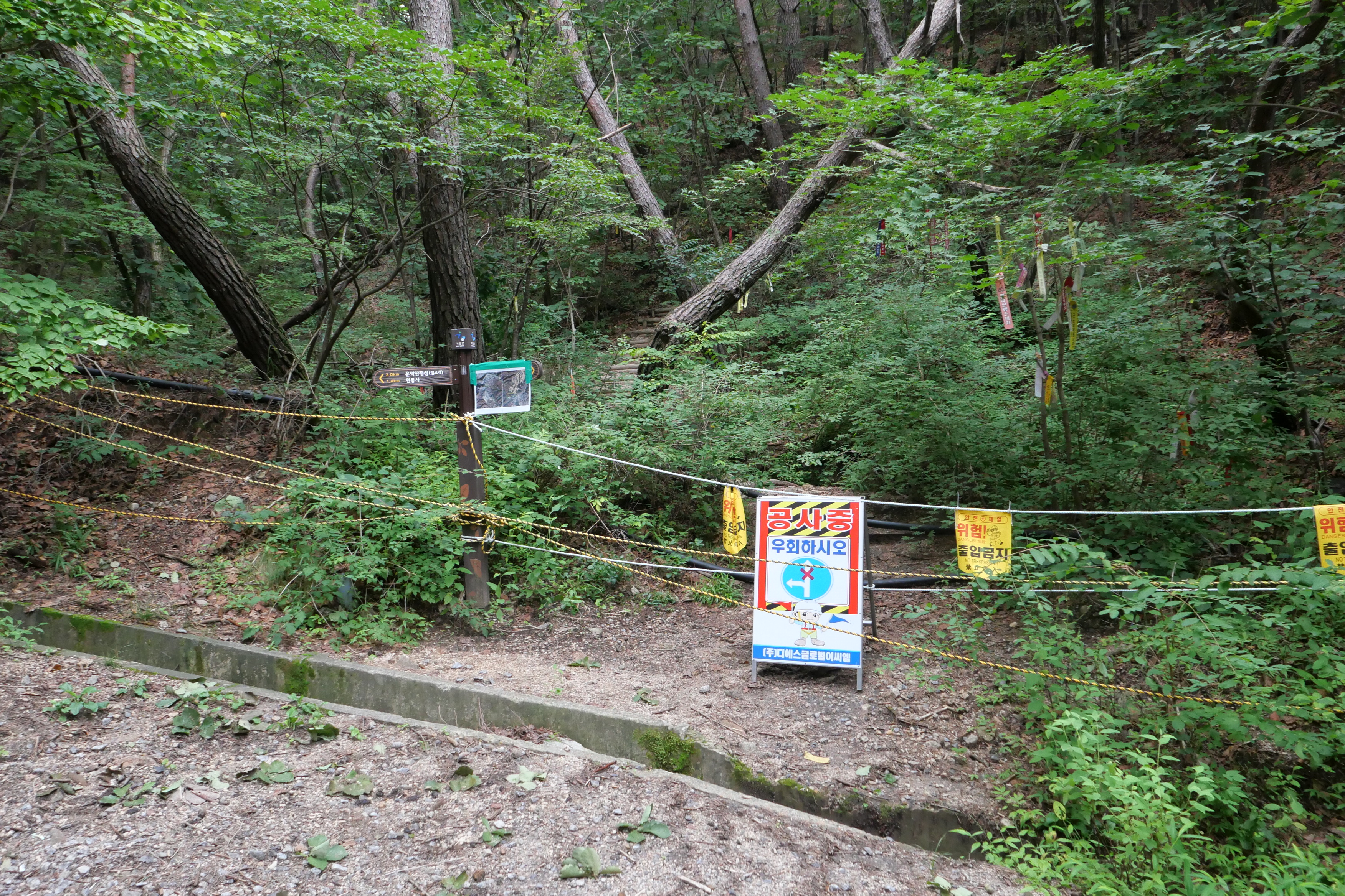 그런데 공사중이라고 우회하라는 안내 표지판이 있고 금줄이 쳐있다.