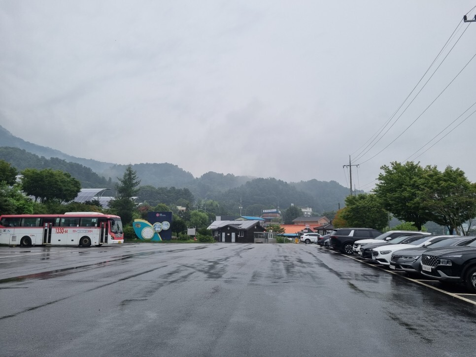 오후 1:11분, 비에 젖은 운악산주차장